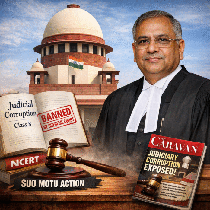 Following separate developments, Justice Surya Kant reportedly took suo motu cognizance of a Class 8 textbook chapter titled “Judicial Corruption in Judiciary.” The chapter was subsequently banned, and the book was withdrawn from circulation after judicial intervention.