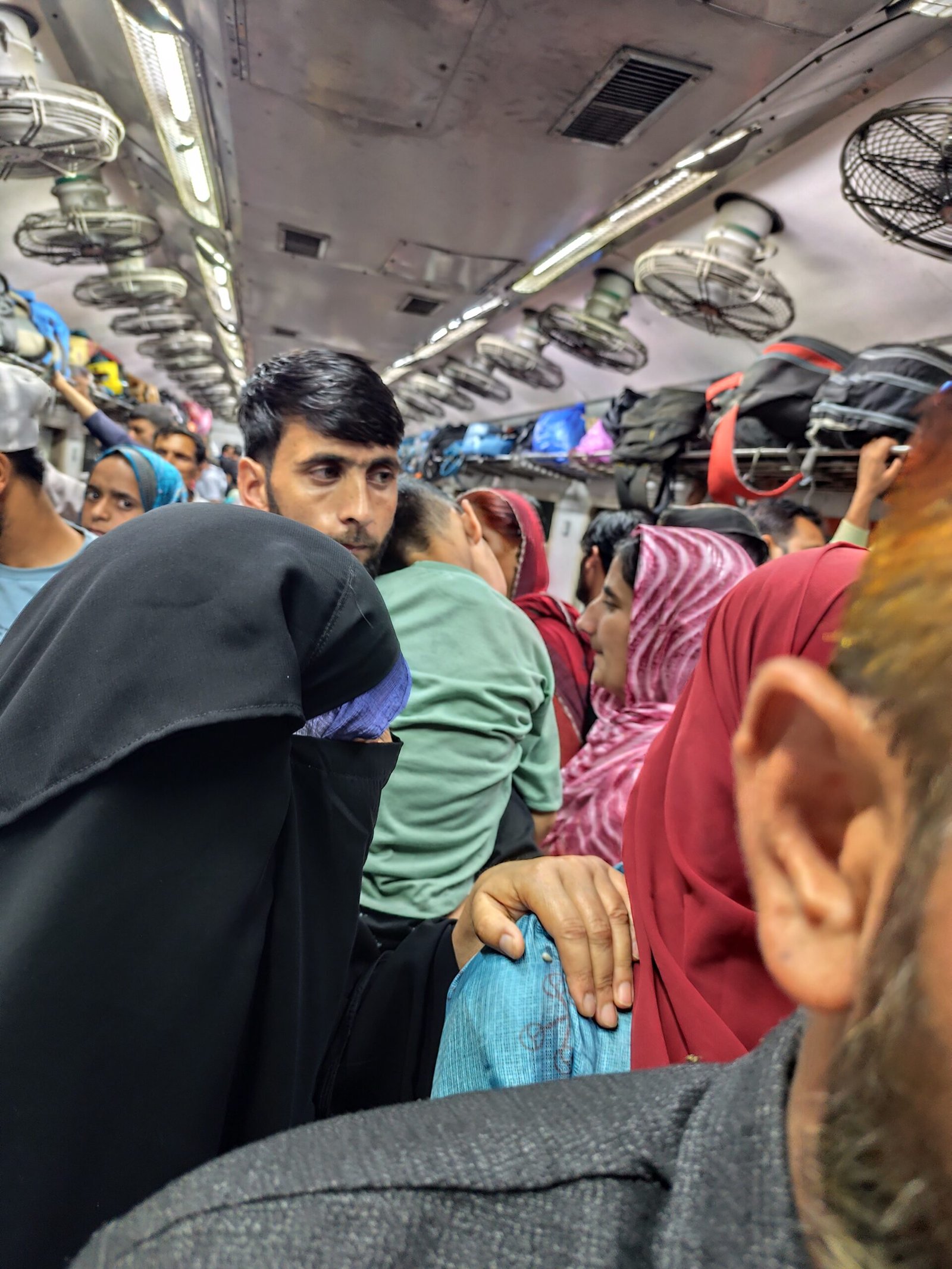 Eyewitnesses report passengers packed shoulder to shoulder with no room to stand or breathe properly, children crying, and mothers struggling to hold their babies in the congested environment. Basic amenities like ventilation and seating were practically inaccessible.